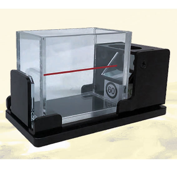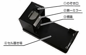 | セルにサンプルを入れて標識回転ダイヤルを回すことで簡易的に値を見ることができます。 測定値は20°~60°までです。それぞれシールの数値が確認できれば測定可能です。 アナログ式で消耗品はありません。 ![]() ■特徴 ●コンパクト ●壊れにくく安全 ●誰でも簡単に使用可能 ■測定方法 1.付属の角セルに確認したい液体を赤い標線まで注ぐ。 2.満たされた角セルを本器のセル置き場にセットする。 3.のぞき口からのぞき込み、第一ミラー、第二ミラーを経由し視認できる標識ダイヤルを回転させ標識の見え具合を確認する。 ■各部名称 ![]() ![]() ■仕様