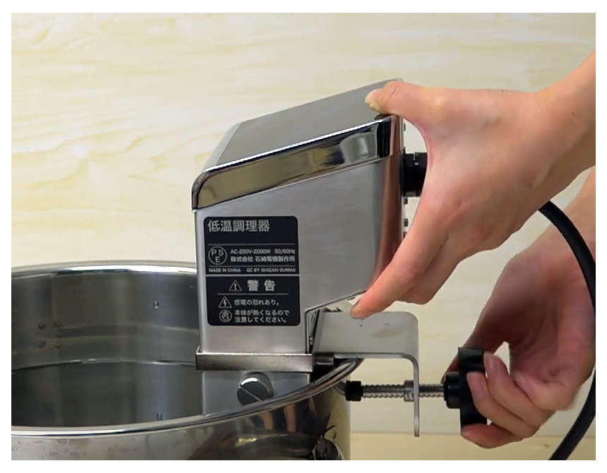 本器を鍋に入れ、ハンドルを鍋側面に固定します。