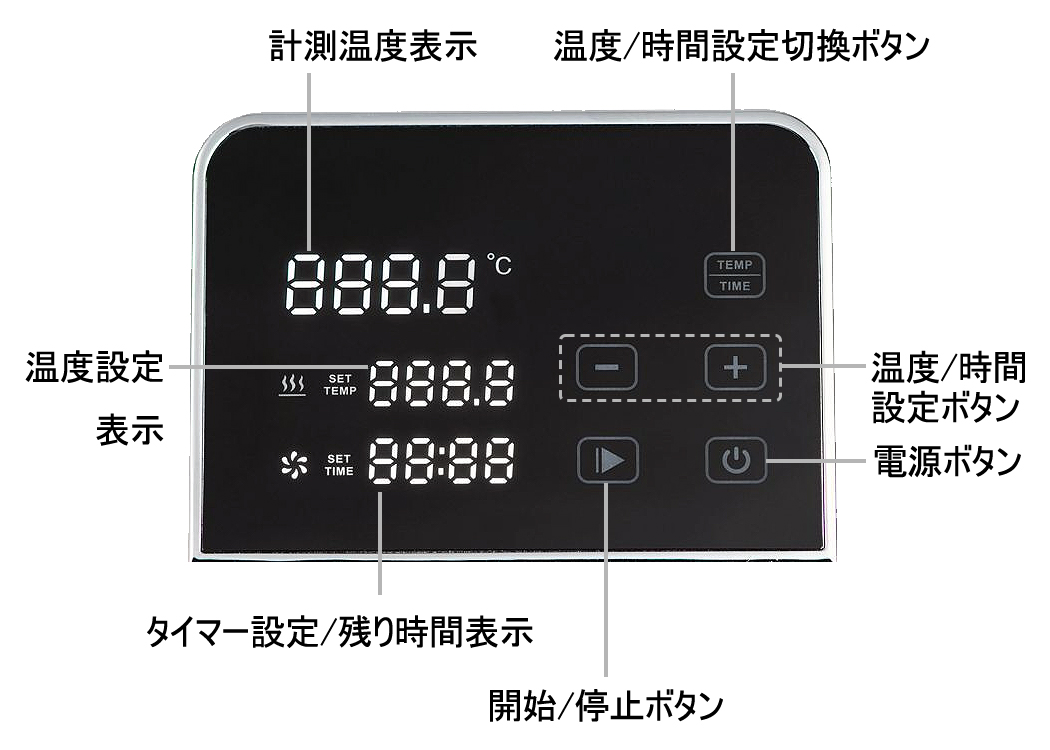 ※2:時間設定の機能はアラーム音によるお知らせタイマーです。設定時間が来ても自動停止(動作OFF)することはありません。