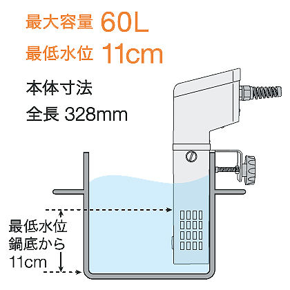 安全保護機能 最低・最高水位感知、温度過昇防止(温度ヒューズ)