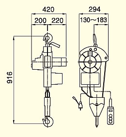 | 小型電動ワイヤーロープホイスト(有線操作スイッチ)/品番 M278NH-N315T |