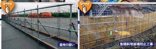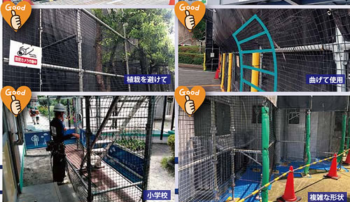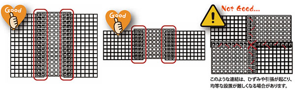 ![]() ■連結方法 設置・連結には「結束バンド」「ロープクランプ」等をご使用下さい ![]() ![]() ■養生クランプやシートクランプを使うと綺麗に取り付けできます。 ![]() ■コーナー部の作り方 ![]() ■コーナーイメージ ![]() |