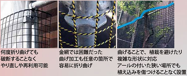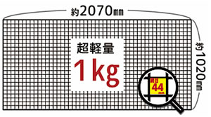軽量1㎏、厚み4mm、耐候性20年以上、難燃引張強度1600N以上、曲げても折っても大丈夫!![]() ■特長 ●1枚の重さ:金網は約8kg/本製品は約1kg 従来の養生金網なら2~3枚(16~24kg)しか持てませんが、本製品なら10枚の束でも10kgですから1人で楽々持てます。 作業効率が5倍以上アップするような感覚です。 重さは金網の1/8 ●100枚の厚さ:金網は約2.3m/本製品は約0.36m 体積も約1/6になり、トラックも1台減らせる感覚。 しかもCO2軽減やSDGsもつながります。 現場の仮置きや小運搬の時も効果を発揮。 2トン車には300枚・高さ1180mm積んだ実証画像 薄さは金網の1/6 ![]() ●適応能力:金網は皆無/本製品は無限の可能性 本製品なら臨機応変、現場に合わせ、そのつど曲げたり折ったりカットしたりと加工ができ、しかも何百回折ったり曲げてもポリエステルの繊維は切れません。 複雑な形状のマンションや人通りの多い地下鉄などの工事で綺麗に設置ができます。 ![]() ●難燃性と絶縁性で安心 金網は燃えません。本製品も難燃性であり、燃え広がることはありません。 また、ポリエステル製なので絶縁性を有しています。 ●耐候性20年以上サビない 本製品は紫外線に強く促進耐候性試験では20年以上も強度を保持します。 また、ポリエステルなので錆びません。 塩害を気にせずどこでも使える ●ディフェンス力は互角 どちらもハサミやカッターナイフでは切断が困難です。 クリッパーでは切断は可能ですので加工が出来ます。 ※引張強度:交点に1ヶ所引っ掛けて1600N(160kgf) ●金網の場合、破損部分が凶器になる危険性も。 一方、本製品なら、人通りの多い場所でも心配ご無用です。 ●従来の金網は侵入者を排除することに傾注していましたが、本製品はそれを同レベルで叶えつつ、「綺麗に貼れて目立たない」など、景観に配慮した展開が可能です。 ●本製品はのイニシャルコストは金網と比較して若干割高ですが、長期的な運用を考えた場合、「破損しない」「養生網のトラック運送を軽減」「最終的に逆転」との評価を頂いております。 ■使用イメージ ![]() ![]() ![]() ■サイズ&重量:厚みは約3.6mm ![]() 柔らかい繊維を180℃で加熱して硬化させています。 その為、寸法や重量は保証値でなく目標値として表示しています。 ■耐候性試験:20年以上の長寿命 ![]() ■何度折っても大丈夫。曲げも自在 ![]() ■引張強度 ![]() ■設置場所に合わせて選べる3色のカラーバリエーション ![]() ![]() ![]()