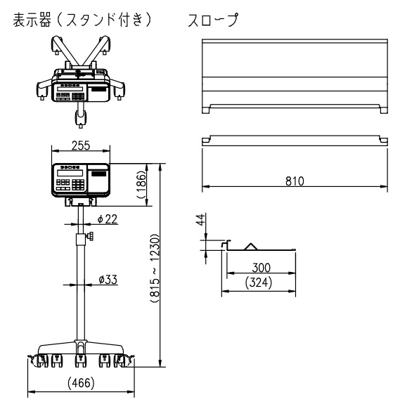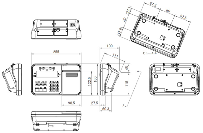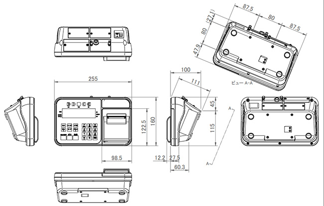 | ■寸法図 ●台はかり全般 ![]() ![]() ●表示部のみ ・M2SL200KCF-JAA ![]() ・M2SL200KCPF-JAA ![]() |