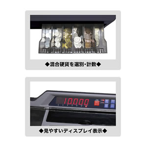 混合金種を高速かつ正確に選別処理するスタイリッシュな筐体デザイン![]() ●混ざった硬貨を自動選別 ●金種毎枚数、合計金額などワンタッチ表示 ●操作ボタン等見やすい表示で簡単操作 ●コンパクト設計でどこでも使用可能 ●バッチ機能付き ![]() ■仕様