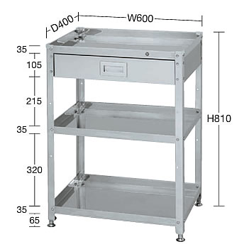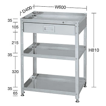 ステンレス小型作業台固定ワゴンSUS430 品番 M350N4-6083S 価格は下記をご覧ください |