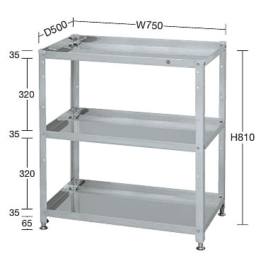 | ステンレス小型作業台固定ワゴン 棚板は皿型・フラット型に組み替え可能 ![]()