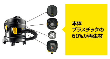 | 本体に使用しているプラスチックの60%に再生素材を採用しました。日本の業務用市場で初めて本格的に再生プラスチックを使用した環境配慮型の製品です。 製品1台ごとに、新たなプラスチック1.4kgの生産を削減。限りある石油資源の節約とCO2排出削減に貢献し、企業のサステナブルな活動を「使う」ことでサポートします。 過酷な現場にも耐えうる「丈夫さ」と、作業者の負担を軽減する「軽量」設計も追求し、環境性能と実用性を、高いレベルで両立させています。 さらに、別売りのHEPAフィルターを装着することで、よりクリーンな排気を実現。衛生面を重視する現場にも対応します。 ![]() ■特長 ●貴重な資源を節約 新しい原料の使用比率を抑えます。再生材料の使用は二酸化炭素排出を抑えます。革新的で丈夫、エコな製品です。 ![]() ●高品質で丈夫 通常製品と同等の品質基準。再生プラスチック部品とはいえ厳しい試験に合格しています。業務用ユースに耐えうる頑丈さを有します。 ●軽量 片手で持ち運べるので、段差の移動、棚への出し入れも可能です。十分なタンク容量でありつつ、軽量化も実現しました。長期間のご使用でも疲れない設計。 ![]() ●静音61dB(A) 騒音に敏感な場所や夜間の作業に最適です。静音で作業者に優しい。 ●人と環境に優しい 別売の高性能HEPAフィルター(欧州基準DINEN1822:2019)は、ウイルスレベルの微粒子も捕集。周囲の空気環境にも配慮します。 ![]() ●欧州の基準に基づいています DINEN45557: エネルギー関連製品に含まれる再生材料の割合を評価するための一般的な方法 DINSPEC91446: 消費と取引量によるプラスチックリサイクルの分類 ●再び資源として活用できます 資源循環の観点から、産廃も「小型家電リサイクル法」に基づき廃棄する事が社会貢献につながります。 【正規の廃棄ルートとは?】※環境省回答より 廃棄の際は製品そのままの姿で認定事業者に渡していただければ問題ございません。 産業廃棄物を認定事業者に処理委託する場合は、廃棄物処理法に基づく委託契約書の締結とマニフェストの発行が必要となります。 ■用途・清掃場所 ●ホテル、事務所、店舗などの清掃に最適 ●硬い面の清掃に(タイル、天然石、PVC、リノリウムなど)。 ●カーペットフロア ![]() ■仕様
