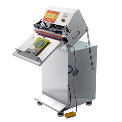 エアー駆動ノズル式脱気真空包装機(傾斜作業台タイプ)