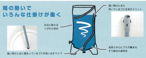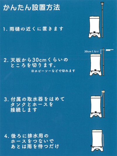 | 常にフレッシュな雨水を貯めることができる、これまでにない家庭用雨水タンクです。 貯めた雨水はもしもの断水時に日用水として利用でき、また雨がふれば貯水されるので長期的な断水にも効果を発揮します。 新築住宅の外観を損なうことなく安定性・機能性を確保したデザインを採用しています。 ![]() ■もしもの断水時困るのは日用水不足!! もしもの断水時、飲み水は多少時間はかかる もののペットボトルや給水車などで供給されます。問題となるのはトイレの流し水をはじめとする日用水の不足です。 M4236RH-150Lならできるだけ新鮮な雨水を150L貯める事ができます。また雨が降れば貯水されるので長期的な断水にも効果を発揮します。 ![]() ■流れてくる水をぜんぶ利用する! このM4236RH-150Lに付属の集水器は雨どいに流れてくる雨水を全部雨水タンクに流入します。 従来の集水器の集水効率は約50%。雨水タンクに流れ込む以 外の雨水はすべて雨どい下方に流れていましたがレイン ハーベストの集水効率はなんと100%。 一滴も無駄にすることなく雨水が貯まるのも早く、そして効 率よく雨水を貯めることが出来ます。 ![]() ●M4236RH-150Lは、雨が降るたびに水が入れ替わるので、できるだけキレイな状態をキープする事ができ、いざというときにキレイな水を日用水として使う事ができます。 ![]() ●集水器のフィルターで大きなゴミをカットできます。また、雨どいに設置したまま、フィルターのみを掃除することが出来るのでメンテナンスも簡単です。 ![]() ●雨水タンクの底はすり鉢状のように傾斜になっており、ゴミが集まりやすくなっています。ドレンロを開けると一気にゴミが排出され、スッキリきれいになります。 ![]() ■スタイリッシュに雨を貯める 防災のための普通の生活のストレスになっては、次第につかわなくなってしまう事も…。M4236RH-150Lのシンプルでスタイリッシュな形状はあらゆるお宅の外観をそこなわず、生活に馴染む形で“使いたい”を演出します。 ![]() ●タンク底面をすり鉢状にすることで架台との連結がしっかりし、安定感は抜群です。また、十分な厚みを確保しているので、水が入って重くなっても安心です。 ![]() ●満水時の重さによる本体の変形対策として、本体側面にアーチ構造を採用。美しい曲線によりモダンな建築とも違和感なく合わせられます。 ![]() ●スライド式の上蓋はしっかりとロックされ強風時にも安心。本体の曲線ともスムーズなラインでつながります。 ![]() ■雨の勢いでいろんな仕掛けが働く ![]() ■かんたん設置方法 ![]() ■たてとい対応表 ![]() ■仕様
