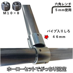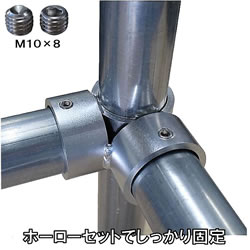 | ■特長 ●外径48.6mmの単管パイプ用接続金具で、ホーローセット(M10×8mm)により確実な固定が可能です。 ●材質は鉄(STK)で、表面処理には三価クロメートメッキを施しています。 ●インパクトドライバーでの締付けにも対応し、六角レンチ(5mm)を使用します。 ●用途に応じて最適なタイプをお選びいただけます。組み方次第でベンチやバイクスタンドなど様々なアイテムに。 ■タイプ