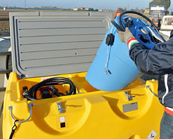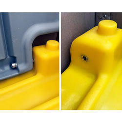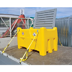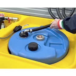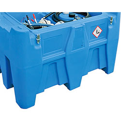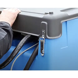 ※メーカー都合により予告なく仕様が変更となる場合がございます。 ■AdBlue給水効率の向上 AdBlue給水運搬タンクを利用することで、建設機械や農業機械などへの給水作業をスムーズに行うことができます。フォークリフトで持ち上げ、軽トラックなどの荷台へ載せて運搬可能。 ●フォークリフト ポケット 下から持ち上げるためのフォークリフトポケットがあり、取り扱いが簡単です。 ![]() ●固定用のくぼみ 車両上でタンクを固定するためのラチェット式ラッシングベルト用のくぼみがあり、安全かつ簡単な輸送が可能です。 ![]() ●鍵付きのふた 440L以上のタンクには、ふたに鍵が付いているため外部からの侵入を防ぎ安全と内容物の保護を備えています。 ![]() ●こだわりのキャップ 専用の通気口/給油口キャップ、非常用3方向弁を備えており、安全性と車両が汚れるのを防ぎます。またAdBlue®キャップはアセタール樹脂製のため、侵食性物質に対する高い耐性があります。 ![]() ■タイプ