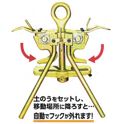 | 大型土のう設置に用いる吊り金具 ●重量:20kg ●最大吊荷重量:2,000kg ![]() ■特長 ①玉掛け作業が簡単に楽に出来る ②2天吊りなので、土のう袋が安定 ③4本足が着地しなければ、何回でも吊ることが可能 ④4本足が着地すればベルトが自動で外れる ⑤作業時間短縮・作業効率アップ ⑥安全確保・作業負担低減 ⑦人員削減・人件費削減にも繋がる ■土のう設置後、垂直に土のうを降ろし、抑え板が降下すると、フックが自動で外れます。 ![]() ![]() ![]() ![]() ![]() ![]() ![]() |