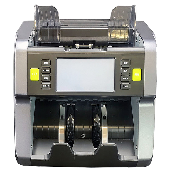 | お札を自動計数し、金種ごとの枚数、合計金額を瞬時にカウントしディスプレイに表示されます。 同一国通貨において、混合金種紙幣の枚数と金額の計数結果を表示します。 マニュアルスタートで操作も簡単!機械の苦手な方にも楽々ご利用いただけます。 ![]() ■特長 ●外貨紙幣対応 12ヵ国の紙幣に対応(JPY/USD/EUR/CNY/GBP/RUB/AED/IDR/SGD/MYR 他) ●外貨計数機能 米ドル紙幣、ユーロ紙幣、中国人民元紙幣、商品券、ビール券等を計数可能。 ●混合金種対応 同一通貨において、混合金種紙幣の枚数と金額の計数結果を表示します。 ●偽札検知機能 紫外線、赤外線、磁気、金属インク、画像による高感度検知機能付きです。 ●異金種検知機能搭載 異なる金種を検知すると計数を停止し、ブザーオンと画面表示でお知らせします。 ●シリアルナンバー読取機能 紙幣のシリアルを読み取り、1枚1枚のナンバーをディスプレイに表示します。 ●大量の紙幣にも対応し、指定した枚数で計数をストップする便利なバッチ機能も搭載 ●高速3段階切替可能 計数速度は800枚、1000枚、1200枚/分の3段階で切り替えることができます。 ●4.5インチのカラータッチスクリーン搭載 見やすく使いやすいカラー液晶タッチパネルディスプレイを採用。 ●本体連動カウント表示機付き 別ディスプレイの計数表示機が付属しています。 ![]() ●大容量 300枚を一度に収容できる大型ホッパー仕様。 ![]() ●小型・軽量 コンパクト設計なのでどこでも使用可能場所を選ばず利用できます。 ●バックオープン 中央部開閉により、異物除去や各センサーのお手入れ等、メンテナンス性も優れています。 ■用途 銀行、スーパーマーケット、映画館、小売店など、紙幣やチケットなど ■機能 ●混合額面計数モード(日本銀行券4金種、米ドル紙幣、ユーロ紙幣) ●単一額面計数モード(日本銀行券4金種、米ドル紙幣、ユーロ紙幣) ●バージョン別計数モード(日本銀行券4金種、米ドル紙幣、ユーロ紙幣) ●単純計数モード(日本銀行券4金種、海外紙幣、商品券、ビール券) ■仕様