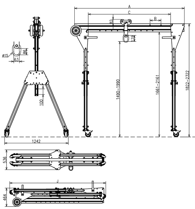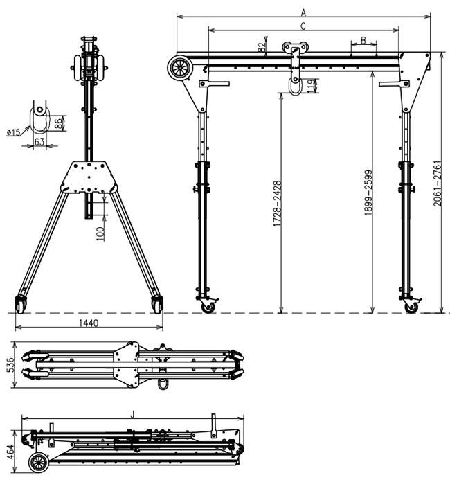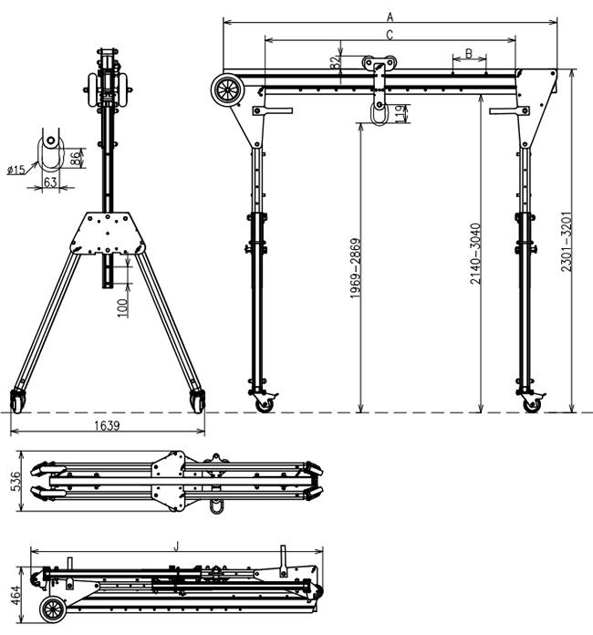 折りたたみ式アルミ門型クレーン1000KG