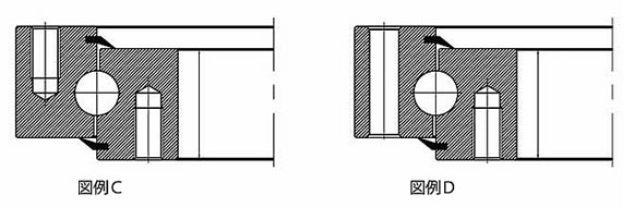 旋回ベアリングは規格化されていないため、一般的には各々の用途に応じた製品を設計製作いたします。