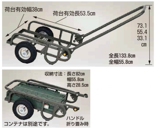 アルミ製コンテナ1個リヤカーエアータイヤ(オリーブドラブ色陸上自衛隊OD) 品番 M453AWA-5338T-OD |