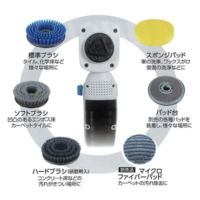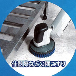 ■作業の効率を上げる多彩な機能 ![]() ![]() ![]() ![]() ■様々なニーズを満たすアタッチメント ![]() ■使う人にあわせて調整できる伸縮タイプ 腰を曲げずに立ったまま頑固な汚れをラクに落とす。 高速回転:約180回転/分 ![]() ■仕様