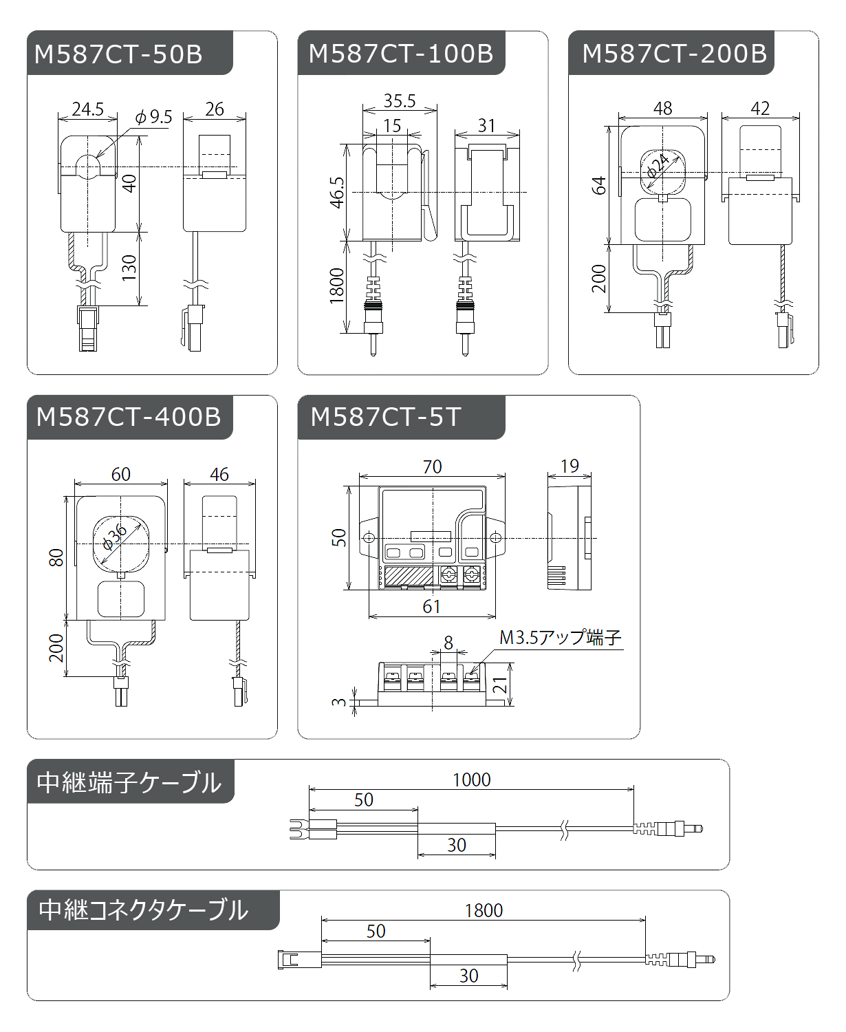 M587CT-400B 400A 80A~480A CT、CT中継コネクタケーブル