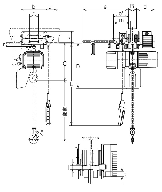 電動トロリー付電動チェーンブロック2速型(上下巻上2速横行2速インバーター式)