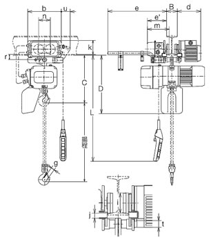 電動トロリー付電動チェーンブロック1速型(上下巻上1速横行20m/分50Hz1速式)