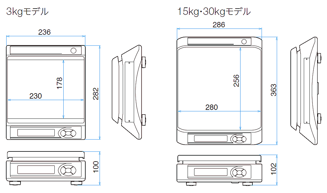 | コンパクトで使いやすい、多様な計量をサポートする検定付き上皿質量はかりです。 見やすい表示と簡単操作で、計量作業を快適に。 ![]() ■特長 ●正確で快適な計量作業を実現するデザイン。シンプルなボタン配置で操作も簡単。 ●背面側からも質量が確認できる両画面モデルもラインナップ ![]() ●使いやすい低床設計 ●大きく見やすい液晶ディスプレイ ●ACアダプタ(標準)と乾電池(2本)の選べる2電源仕様 ■外形寸法(単位:mm) ![]() ■用途に合わせて選べます ●軽量商品の計量に適した3kgモデル 食品加工や小売業での日常的な計量作業に ●重量物の計量に適した15kg・30kgモデル 物流センターや工場での計量作業に ■仕様