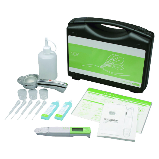 | 作物専用・土壌専用もラインアップした硝酸イオンメーターです。 イオン電極法※により、信頼性の高いイオン測定が可能です。 持ち運びに便利なコンパクトさとワイドな測定範囲により、農業での栽培管理や食品の生産管理などあらゆるシーンにフレキシブルに活用可能です。 ※試料中に含まれる測定対象以外のイオンの影響を受ける場合があります。詳しくはこちら。 ![]() ■特長 ●豊富なラインナップ 幅広く使用できるM77LQT-NO3H-11NH(一般用)のほか、M77LQT-NO3H-11CH(作物用)やM77LQT-NO3H-11SH(土壌用)をラインアップ。 ●測定は平面センサへ滴下するだけ メーカーの電極技術を凝縮した平面センサだからできる微量滴下測定。 ガラス電極・比較電極・温度センサを厚さ約1mmに集積し、ラボ用ガラス電極と同じ原理を採用。信頼性の高い測定が可能です。 ●誰でもカンタン・安心測定。 シンプルなボタンと安心の判定機能でだれでもカンタンに操作できます。 ●用途に応じて選べる多彩な測定方式 滴下する・浸ける・すくい取る・ふき取る・固形物・粉末・シート状 ●場所を選ばない コンパクトボディに加え、標準液ボトル入の専用ケースで持ち運び。防水機能で屋外でも安心。 ●コスト削減 標準液消費も1/100、サンプル消費も1/100、センサも交換可能。 ●バックライトと温度表示機能を搭載 暗い場所でも測定値の確認が可能。ボタン操作と測定値が安定した時に点灯します。 ■用途 土壌・栽培管理・食品・農作物の生育管理などに ■⽤途に応じて多彩に選べる測定⽅法 ![]() ■キット内容