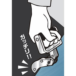 鋼材が簡単に持ち運べる人力運搬用クランプ![]() ■特長 ●手づかみによる疲労やケガを防ぐ安心設計 つり荷重による強力自動締め付け機構/グリップ力はつり荷重に比例 ●片手でラクラク操作! 軽量&シンプル設計 軽量(製品質量500g)でシンプル機構だから、取扱いが簡単 ●手づかみ、抱え込み運びによる手首・腰への負担を軽減 ●ワークへ直接触れる事なく、指詰め・火傷・切創等の防止に ●回転自在で便利な取手付き ●締め付け用カム及びピンは、熱処理済み高合金鋼製 ●ニッケルメッキを施し、耐久性・耐食性に富んだ高抗張力鋼製本体 ●吸盤でつれないもの等に使用可能 ■手づかみによる疲労やケガを防ぐ安心設計 つり荷重による強力な自動締め付け機構を採用。 荷重がかかるほどしっかりと部材をつかみます。 手づかみによる疲労やケガを防ぎ、安全な作業をサポートします。 ![]() ■片手でラクラク操作! 軽量&シンプル設計 自重わずか500gの軽量仕様のため、片手で簡単に取り扱えます。 シンプルな設計で、迷うことなく使用でき、スムーズな作業をお手伝いします。 ![]() ■用途 運搬、引抜き、組立、取り付け、溶接、位置決め、取り出し ■適用部材 ガードレール、ブリキ加工製品、木材、簡単な建築資材、機械加工材料、溶接材 ■使用可能材料 硬度HV320までの鋼材及び非鉄金属 ■注意事項 ●カムが摩耗したものや、本体の変形したものはつかむ力が低下するため使用しないでください。 ●HHC型の耐荷重は60kgですが、人力による運搬には労働基準法の遵守と「職場における腰痛予防対策指針」を参照してください。 ■使用例 ![]() ■利用シーン例 ![]() ■寸法図 ![]() ■仕様
