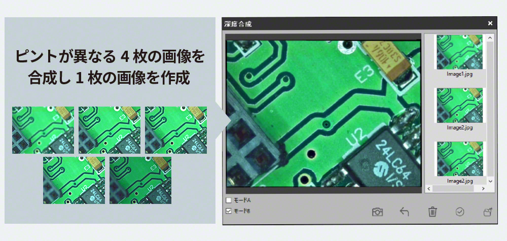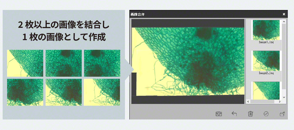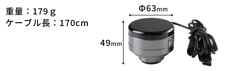 | 顕微鏡にアダプタを接続するだけで500万画素の高画質で映像化します 接眼レンズをのぞき込まずテレビ・PCモニタで確認。 複数人で共有でき、業務の効率化を図ります。同時に複数人で観察する場合にも最適です。 ![]() ■特長 ●1/2.5型の最新CMOSセンサー搭載 従来品と比べ圧倒的に鮮明な映像を表示 最新の高感度1/2.5型CMOSセンサーを搭載。シリーズ史上最高画質の 500万画素で映像化。複雑な被写体でも細部まで鮮明に観察することができます。 ![]() ●静止画は最大2592×1944ピクセルに対応 細部にわたり詳細を確認することができ正確性が向上します 静止画はフルHDより2.5倍大きい最大2592×1944ピクセルに対応。高画質での観察・記録を実現します。また、動画は最大1024×768ピクセルに対応。フレームレート30fpsでなめらかな映像を記録することができます。 ※フレームレートは1秒あたりのフレーム数(静止画像数)です ![]() ●タイマー機能搭載で撮影時の利便性を向上します 静止画撮影はタイマー機能が便利です。撮影回数や撮影間隔を指定するだけで自動で撮影を開始。連続撮影時にシャッターを押す手間を省くことができます。また、シャッターボタン押すことなく撮影できるので、両手が空いた状態で撮影することができます。 ![]() ●最高画質選択時でもタイムラグが発生しづらい 観察時のラグ発生によるロスが減り快適な観察を可能にします。 従来品(3R-DKMC01)と比較して最高画質選択時も滑らかな映像表示を実現。フレームレート30fpsでタイムラグを抑え、ストレスフリーで快適な観察が可能になりました。 ![]() ●新機能搭載 より鮮明な画像を作成できる深度合成・画像合併機能 高低差のある対象物のピントを合わせる深度合成機能 高低差のある対象物の確認に、より鮮明な画像が必要なときは深度合成が便利です。フォーカス位置の異なる複数画像をデジタル画像処理で合成し、広い範囲でピントの合った画像の作成を可能にします。高低差のある電子部品もピントがあった画像を作成することで、1枚の画像で全て伝えることができ報告書等の活用に役立ちます。またこのような画像を作成するには別途合成ソフトが必要な場合があります。この顕微鏡アダプタなら無料の専用ソフトで完結します。 ![]() ●顕微鏡の観察範囲で収まりきらない対象物の撮影に 2枚以上の画像を結合できる画像合併機能 顕微鏡の観察範囲では収まりきらない対象物に対し、分割撮影を行ないそれらの画像を結合することで1枚の画像として作成することができる機能です。 ![]() ※深度合成機能、画像合併機能は64bitOSのみ対応 ※画像合併機能は撮影画像に同じ要素(重なる部分)がないと画像合併が正しく行われません ●作業効率が格段に向上する機能充実の専用ソフトウェア 計測・補正機能搭載。専用ソフトだけで十分な画像加工が可能です この専用ソフトウェアには直線の長さや円・長方形の面積など、充実した計測機能を搭載。その他、明るさ・コントラストの調整やコメント挿入やトリミングなどを行うことができ、専用ソフトだけで本格的な画像加工を行うことができます。 ソフトウェアはメーカーwebページからいつでも無料でダウンロードできます。面倒なレンズ交換の手間がありません。 使用するPCが変わってもすぐにインストールすることができ、素早く使用を開始できます。 ![]() ●充実の機能でもコストを抑えた導入を実現します 顕微鏡付属の純正顕微鏡カメラを購入すると予想以上のコストが発生することも。 この顕微鏡アダプタは高い画素数と充実の機能を備えコストを抑えた価格を実現。 性能と価格の両立でご好評をいただき多数の導入実績があります。 ●様々な顕微鏡で使える4種類のレンズ直径 この顕微鏡アダプタは、生物顕微鏡のみではなく、 金属顕微鏡や実体顕微鏡など顕微鏡の種類を限定せずに使うことができます。 また、接眼レンズの内径が23.2mm/25.4mm/30mm/30.5mmの4種類に対応。 接眼レンズの大きさが違う顕微鏡を複数お持ちの方もこの1台で利用可能です。 ![]() お持ちの顕微鏡にはめ込むだけの 簡単取り付け 本製品は下記の条件を満たす生物、金属、実態顕微鏡等に使用可能です。 ・カメラポートがCマウント(M25.4mmのオスネジ) ・カメラポートがJIS鏡筒(内径23.2mmの直筒) ・接眼レンズ挿入部の内径が30mm、30.5mm ※接眼レンズ部の内径が対応するすべての顕微鏡での使用を保証するものではありません。あらかじめご了承ください。 ・カメラポートが「Cマウント」の場合 直接Cマウントへ取り付けます。 ・カメラポートが「JIS規格」の場合 φ23.2mm0.5倍レンズを取り付けてからJIS鏡筒へ挿入します。 ・接眼レンズ挿入部の内径が30mm、30.5mmの場合 φ23.5mm0.5倍レンズと挿入部の内径に合うアタッチメントを取り付け、接眼レンズ挿入部へ挿入します。 ■用途 ●研究機関 ・研究資料や論文の作成に ・〈農学部〉害虫の調査と報告書の作成 ・〈医学部〉細胞実験 ●教育機関 ・複数人で行う授業に 大画面に映し