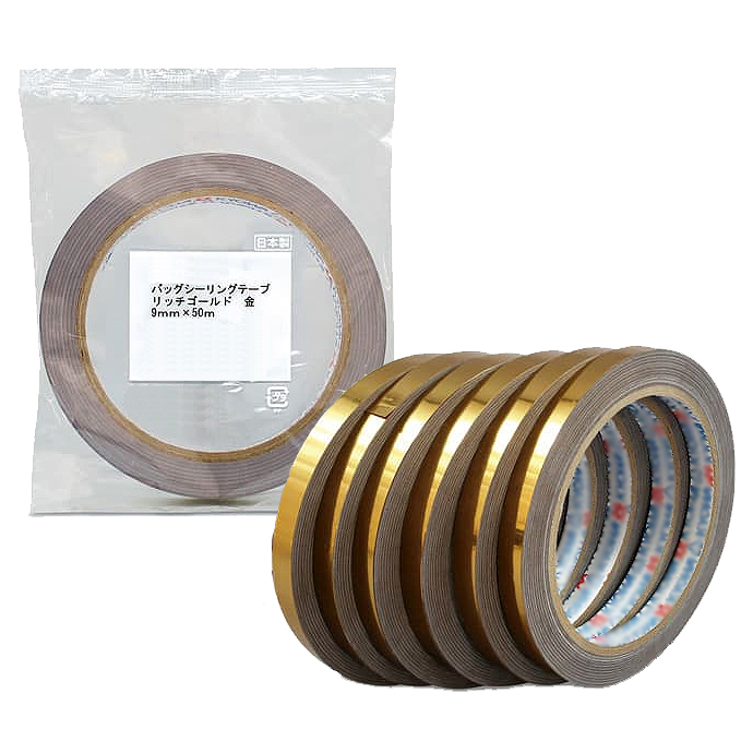 バッグシーリングテープ 金色(9mm幅×50m)金属検出器対応 品番 MB11BSH-150RG |
