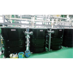 | 1台でも複数でも使いやすい1000Lのポリエチレン槽。 ノズル・オプション機器は用途や内溶液によりカスタマイズ可能。 優れた耐震性(標準設計水平震度:0.6G) ![]() ■タンク本体へ簡単に取り付け出来る攪拌機架台(オプション) ![]() ■使用例 メッキ排水処理 三連槽として ![]() ■寸法図 ![]() ![]() ![]() ■仕様