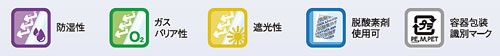 | ガスバリア性と防湿性が抜群。脱酸素材・乾燥剤にも対応しております。 ツヤ面とマット面のお好きな方にシルク印刷、ラベル加工などでご使用頂けるリバーシブルタイプです。 表面(つや)、裏面(マット)となっており、どちらも表面としてご使用頂けます。 ![]() ■特長 ●末尾がR=赤、GD=金、BK=黒の3色にOR=橙、GR=緑、カラースタンドは5色。 ●ツヤ面とマット調の2面でお好みでどちらの面でも表面として使用可能。イメージ合わせてご利用になれます。 ![]() ●ラベル貼付で少量多品種の健康食品、プロテイン、コーヒー、紅茶などに。 ●安全な4角完全R加工、チャックは何度使用しても「開けやすく・閉めやすい」が変わらないチャックです ●食品衛生法の容器包装規格(平成18年厚生労働省告示第201号)試験に適合しています。 ●グラデーションあり ![]() ■性能 ![]() ■用途 ●農産加工品 粉末製品、お茶、紅茶、コーヒー、ココアなど ●菓子類 米菓子(煎餅・あられ)、ナッツ類、クッキーなど ●調味料 粉末調味料など ●健康食品 サプリメントなど ■カラー