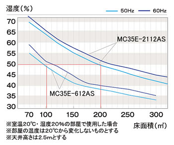 | 加湿で静電気防止 タンクに水を入れ100Vコンセントに差し込むだけ。 バツグンの加湿力 少ない消費電力 設置工事不要 ![]() ■新機能 ①お知らせランプ 消耗品の交換時期になるとランプが点滅します。 ②キーロック 管理者以外の操作を禁止する機能です。 ■抜群の加湿力 工業用の加湿機。 乾燥空気をグングン加湿し、静電気発生を抑制します。 部屋の条件に合わせて、強・中・弱の3段階の運転を選べます。 ■水処理不要、水道水でOK 供給する水は、通常の水道水でOK。 純水など特別に処理した水を使用しなくても、カルキなどの飛散はほとんどありません。 ■設置簡単、楽々移動 設置は水と100V電源があれば、直ちに使用可能。 キャスター付なので、工場のライン変更や不需要期の移動の際にも移設や移動がができます。 ■吐出口 吐出し口は金網でガードされていて、物や指が入らない安全設計です。 ![]() ■自動給水ボールタップ付 水道ホース接続可能。 給水の手間が省けます。 ■消臭パック(4ヶ)を標準装備 消臭パックはニオイの発生を抑え、水回りを清潔に保ちます。 1個で約1ヶ月効果が保たれます。 ■加湿適応面積は 室温20℃、湿度20%の室内(天井高さ2.5m)で使用した場合のグラフです。 MC35E-2112ASで200m2 MC35E-612ASで100m2 (天井高さ2.5m) 室温20℃・湿度50%の部屋を静電気が発生しにくい50%まで上げることができます。 ![]() ■消耗品 消臭パックはニオイの発生を抑え、水回りを清潔に保ちます。 1個で約1ケ月効果が保たれます。購入時4ケ標準装備。 ![]() ■使用イメージ ![]() ■タイプ