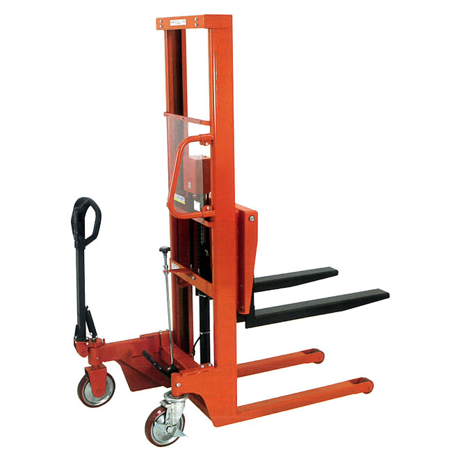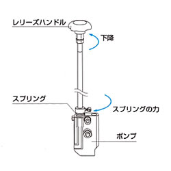 | 油圧・足踏式/電動式 操作性が楽なハンドル付きタイプ 狭いスペースや通路でのパレットの搬送移動に便利です。 ![]() ■特長 ●狭い通路でも簡単操作、場所をとらない足踏油圧式のリフターです。 ●操舵用車輪が押ハンドルと一体になっているので方向転換が容易 ●ウレタン固定車輪・自在にはブレーキ付きウレタン車輪を採用。 ●マスト、フォークに高張力鋼板を使った強靭軽量設計です。 ●過負荷防止装置付き※1 ●早送り装置付き(約20%の荷重で自動的に切り替ります。)※2 ●フォーク巾を簡単に調整。 ●フォークのガタつきを防止する進行造マスト。 ●レリーズハンドルにスプリングバック機構を付けました。緊急時に手を放すだけで下降が停止します。 ●ポンプペダルの形状を踏みやすくしました。 ●粉体塗装 ●油圧シリンダー ●ブレーキ付きキャスター ●フットペダル式 ※1.荷重オーバーの時は上昇しません。 ※2.詳細は仕様表をご参照ください。 ■主な仕様