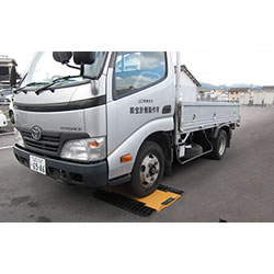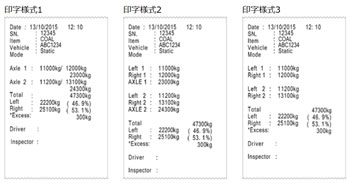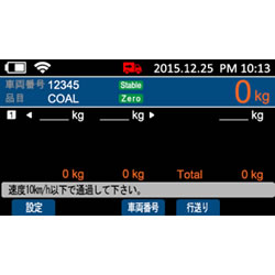| ワイヤレス充電式 大容量で長持ちの18650 標準型リチウムイオン バッテリを採用。 ワイヤレス充電により バッテリーの保護性能 が向上しました。 ![]() ■使用方法(通過計量) 1.電源を入れるだけで簡単自動接続 計量台は持ち運び簡単!設置も本体を置いてスローププレートをはめこむだけ。 計量準備は電源スイッチを押して起動するだけです。 ![]() ■指示計も電源をONにすると計量台を自動認識!面倒な操作は一切ありません。 ![]() ■2.通過計量に設定して車両番号品目を入力 ロータリースイッチでメニューの中から「計測」を選択して決定。 モードの項目が「通過」になっている事を確認します。 ![]() ■必要に応じて車両番号、品目を入力。 (ここでは車両番号「12345」、品目「COAL」入力しています) ![]() ■3.計量台の上を通過するだけ 時速10km以下で通過するだけ!ノンストップで測定可能です! 時速10km以下で計量台の上を通過するだけで各軸の重量測定が可能! コードレスなのでケーブルやコネクタ等を車輪で踏みつけて破損する心配がありません。 保護性能IP66で水に強く、安心して屋外での使用ができます。 ![]() ■その場で自動印字 最後の軸が通過してから「通過計量タイムアウト」経過後に自動で合計値が印字されます。 印字様式は以下「印字フォーマット」3パータンの中より選択ができます。 印字後、指示計画面が左写真の状態になり「リセット」を選択すると、次の計量の待機状態になります。 ![]() ■印字フォーマット ![]() ■使用イメージ ![]() ■寸法図