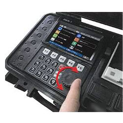■情報が見やすい! 視認性抜群の4.3インチフルカラー液晶ディスプレイを採用。 表示される情報量も豊富で操作に迷うこともありません。 ![]() ■操作が簡単! ロータリースイッチで直感的に分かり易い操作を実現。 回転させて項目選択、押して決定という手順で指一本で操作ができます。 ![]() ■USBメモリで簡単データバックアップ! 本体にも500,000,000軸分の計量データを記録できますがUSBメモリへのデータバックアップも可能です。 USBメモリにはCSV形式でデータが保存されるので、Excel等を使用してデータ編集や印刷などの運用ができます。 ![]() ■メンテナンス性抜群! 計量台は大容量で長持ちの18650標準型リチウムイオンバッテリを採用。 計量パッド本体はワイヤレス充電式なので、バッテリーケース部から水が侵入して破損するするなどのリスクが軽減されます。 また、コードレスなのでケーブルやコネクタ等を車輪で踏みつけて破損する心配がありません。 さらに保護性能IP68で水に強く、安心して屋外での使用ができます。 ![]() ■外形寸法 ![]() ■仕様
