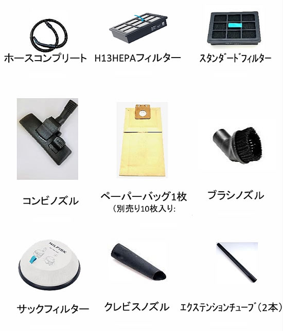 | 業務用だからこそ軽く、シンプルで使いやすく、丈夫で長持ち 業務で使用するために設計された掃除機です。 下記のような場所では、効率的に広範囲を掃除するための業務用掃除機が必要とされます。 ホテル/レストラン/オフィスビル商業施設(ショッピングモール、百貨店)/病院や医療 施設/学校や教育機関/工場や製造業の施設/倉庫や物流センター/清掃業者の現 場/交通機関(空港、駅など)/公共施設(図書館、博物館など)/冠婚葬祭式場 排気側HEPA フィルターはクリーンな排気と優れた集塵性能で、快適で安全 な作業環境を提供します。 また、環境保護に貢献するするため、リサイクル プラスチックを採用しています。 ![]() ●毎日の日常的な清掃作業にも耐えられるベーシックタイプ ●軽量で操作しやすく頑丈。人間工学に基づいたデザイン ●屈まずにオン・オフできるフットスイッチを採用 ●ダストバッグの容量が同等機種の中で最大(交換頻度が減ります) ●騒音レベルが52dB(A) と静かなため、日中のオフィス、ホテル、病院など音に敏感なエリアの清掃に最適 ●各種ノズル、電源コードも本体後方に収納可能 ●HEPA フィルター仕様では1200W の強力なファンユニットを排気側に搭載。 高レベルな衛生環境が求められる現場で威力を発揮します。 ■特長 ●交換が簡単な排気側H13 HEPAフィルター (ME13P-300RHのみ) ●約5.0 kgと軽量なので、清掃場所の移動が容易 ●1つのコンセントから広範囲の作業が可能(電源コード15m) ●52 dB(A)という低騒音なので、日中や静かな場所の清掃に最適 ●屈まずにオン・オフ出来るフットスイッチを採用し、作業効率アップ ●各種ノズル、電源コードも本体に収納可能 ■排気側HEPAフィルター ![]() ■フットスイッチ ![]() ■ノズルホルダー ![]() ■標準付属品 ![]() ■仕様