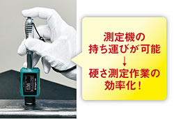 ■測定する試験片は、下記の条件に沿って準備してください。 ①質量:5kg以上 ※質量2~5kgの間、または薄く変形しやすい試験片は5kg以上の安定した台に乗せて測定してください。 ※質量2kg未満の試験片は、ワセリン等のカップリング剤を使用し、5kg以上の安定した台へ隙間ができないよう固定して測定してください。 ②厚さ:3mm以上 ③表面粗さ:Ra2μm以下 ※ Ra2㎛より粗い場合は研磨してください。 ④表面の曲率半径:30mm以上 ⑤試験片の端から試験箇所まで5mm以上距離があること ⑥表面温度:80℃以下 ⑦表面硬化材料の表面硬さ試験:硬化層の厚さ0.8mm以上 ⑧磁気を帯びていないこと ※残留磁気がある試験片は、必ず脱磁を行ってください。 ⑨塗装されていないこと ※塗装されている試験片は、塗装層を除去してください。 ⑩割れやすいもの、打痕が残ると困るものでないこと ※本製品は、硬度HV1600のとても硬い測定子を、試験片へ落下させることで硬さを測ります。 測定後、試験片に若干の打痕が残りますので、ご注意ください。 ■オプション