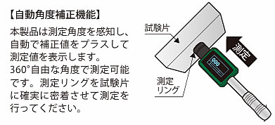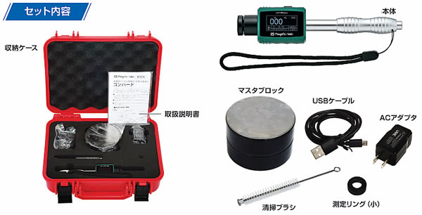 | 硬さ測定をもっと快適に。 現場測定を実現する質量約90g 本体に約2000組のデータ保存 単位の自動換算が可能 測定可能な角度360°対応 ![]() ■こんな現場にご提案します。 ●金属材料の受入検査、識別などで硬さ測定を日常的に行う ●据え置き型の硬さ試験機を使用している ●現場で硬さ測定を行いたい ●測定箇所、硬さ単位にとらわれず幅広く硬さ測定を行いたい ●硬さ測定の記録データを取りたい ■もう硬さ測定に困らない!測りたいとき、測りたい場所で簡単に測定 【据え置き型硬さ試験機】 と比較して… 持ち運び可能!複数の硬さ単位も扱える ■【従来のポータブル硬度計】 と比較して… 表示部と測定部が一体化!手のひらサイズでよりコンパクトに 他にも… ・平均値、最大値、 最小値の算出 ・USB接続による データ出力 ・JIS規格材も 測定可能 ■使用方法は簡単。手のひらサイズで機能がたくさん ●場所を選ばず手軽に測定 ワークを検査室や据え置き機まで運ばずとも、現場で硬さ測定を行うことができる 簡単に運ぶことができない大型ワークの測定にも最適 ![]() ●幅広い単位で自由に測定 ・据え置き機では1種類のみの硬 さ単位が、7種類も測定可能 (自動換算機能付き) ・使 える材 料も多く、一 般 的に扱わ れる硬度試験範囲をカバー 測定可能単位 ・H L(リーブ ) ・H R C(ロックウェル Cスケール) ・HRB(ロックウェルBスケール) ・H B(ブリネル) ・H V( ビッカース) ・H S(ショア) ・σB( 引張 強さ近似値、MP) ■データ保存で確実に測定 ・本体メモリへのデータ保存と、PCへのデータ出力が可能! ・単位換算や手書き記録の手間が減り、品質記録として残すこともできる ![]() ■360°どの角度からでも、狭い場所でも自在に測定 ・自動角度補正機能が搭載されており、ワークを動かさずとも測定可能 【自動角度補正機能】 本製品は測定角度を感知し、自動で補正値をプラスして測定値を表示します。 360°自由な角度で測定可能です。 測定リングを試験片に確実に密着させて測定を行ってください。 ![]() ●オプションDL型測定子で、スペースが限られる奥まった場所の測定にも対応 ![]() ■普段使用するこんな材料も測定可能! ①鋼、鋳鋼 ・機械構造用炭素鋼 ・炭素工具鋼 ・クロムモリブデン鋼 ・高速度工具鋼 ②合金工具鋼 ・切削工具鋼用、耐衝撃工具鋼用、冷間金型用、熱間金型用 ③ステンレス、耐熱鋼 ・熱間圧延ステンレス鋼板及び鋼帯 ・ステンレス鋼鋳鋼品 ④普通鋳鉄 ・ねずみ鋳鉄 ⑤ダクタイル鉄 ・ダクタイル鋳鉄 ⑥鋳造アルミ合金 ・アルミニウム合 金鋳物 ⑦真鍮(黄銅) ・黄銅 ・高力黄銅鋳物 ⑧青銅 ・りん青銅 ・青銅鋳物 ⑨銅 ・タフピッチ銅 ※上記は、JIS規格で硬さ試験参考値の記載があるものの一部となります。 ※硬さの基準設定はあくまでも受渡当事者間の規定によります。 ■セット内容 ![]() ■寸法図 ![]()