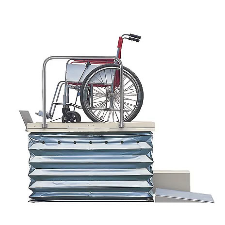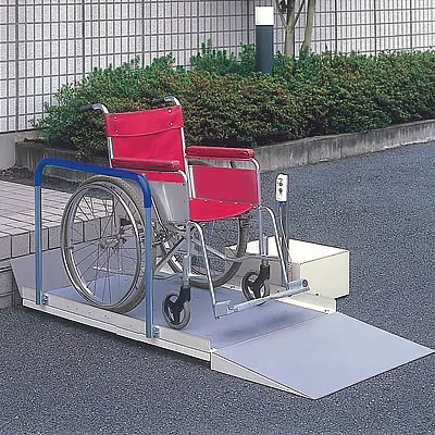 ■昇降中の注意事項 (1)昇降中は車椅子にブレーキをかけて、車椅子の停止状態を保持してください。 車止めの付いている段差解消機でも車輪止めだけに頼って車椅子の停止状態を保持すると、車輪止めを乗り越えて車椅子ごと転落、転倒してしまい生命にかかわる重大事故となる恐れがありますので、必ず車椅子にブレーキをかけて車椅子の停止状態を保持してください。 (2)身体、車椅子などはテーブルからはみ出さないようにして下さい。 身体、車椅子などがテーブルからはみ出すと段差解消機以外の他の物体に接触し、身体の怪我や車椅子ごと転落、転倒して しまい生命にかかわる重大事故となる恐れがあります。 (3)昇降中はテーブルを揺らさないよう静かに乗ってください。 テーブルを揺らすと段差解消機の故障につながり、生命にかかわる重大事故となる恐れがあります。 ■その他の注意事項 (1)ご利用者の身体の容態、状況などに応じて介助者による誘導、補助、操作などをお願い致します。 特にバックで乗り移りを行う際は必ず介助者の誘導をお願いします。 (2)段差解消機にテーブルの傾き、揺れ、沈み込み(自然降下)、異常音など何らかの異常がある場合には直ちに使用をやめ、メーカー又は販売店にご連絡ください。 使い続けますと生命にかかわる重大事故となる恐れがあります。 ![]() |