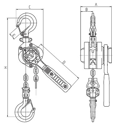 | 500kg以下の軽作業に 小型・軽量・JISに準拠した高強度 本体アルミでより軽量コンパクト化 ![]() ①アルミボデイの採用で20%軽量化(当社比) ②楽々ワンタッチ遊転装置。長年の実績に培われたシンプルな構造で操作も簡単 ③小型機種なのに安全なダブルブレーキ爪採用 ④錆に強いメッキチェーン ⑤便利な収納袋付き(サービス品) ■主要寸法図 ![]() ■規格表