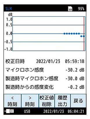 マイクロホンの感度変化が一目でわかるため、計測器管理に役立ちます。