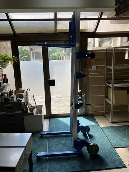 | アルミハイリフトベース幅可変式GL-8レンタルできます。 レンタル可能なアルミハイリフトベース幅可変式GL-8の数量にはかぎりがございます。まずメールにてお問い合わせください。 レンタルの開始前に下記金額を先にお振込みいただくこととなります。 予定レンタル料 運賃 保証金20万円(後でご返却いたします) 最低レンタル日数は3日からとなります。 上記お振込み確認後ご出荷となりますが、出荷までに3日ほどかかります。 手持ちレンタル機械の数量には限りがございますので、必ずレンタルできるとは、限りません。よろしくお願いいたします。 ![]() ベース可変型ですので、床面に置いたパレット・コンテナをそのまま持ち上げることができます。(最大内寸幅930mm) フォークと脚部は簡単に取り外すことができ、持ち運びが容易です。 ウインチは安全ブレーキ付で、ウインチハンドルから手を離すと、フォーク部はその位置で自動的にロックされます。 ■特長 ●調節可能な二股で幅91.4cmまでの荷物や障害物をまたぎます。 ●ベースの調整は内法55.9cm~91.4cm ●幅のある荷物もまたいでリフトアップ ●床面に傷をつけない直径20.3cmの後輪と5cmの前輪キャスター ■用途 ●小さなパレットや電機部材、その他かさばる物も簡単にリストアップ。 ●出荷荷受作業・工場内搬送・資材・部品の取り付け ●建築現場のダクト工事 ●ヒーターの設置 ●配電の工事 ■ベース幅可変最大時 ![]() ■仕様