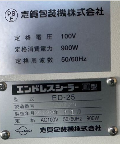 中古エンドレスシーラー(2022年製) 品番 ED-25 問い合わせ番号 Z-01041-6 |