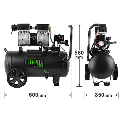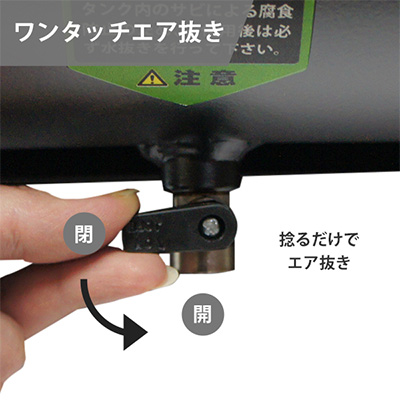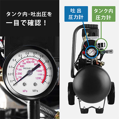 | 30Lタンク搭載のエアーコンプレッサーです。 DIY用途として十分な性能を持ち、家庭用100V電源で各種エアー工具が手軽に扱えます。 オイルフリータイプで油分が混じらないクリーンなエアーで、塗装作業や精密機械のホコリ飛ばしに最適です。 またオイル交換や管理が不要なためメンテナンスも容易です。 ![]() ■特長 ●低騒音で作業音がとても静か 起動中の騒音値が約65dBと低騒音化。 ![]() ●オイルフリーで簡単メンテナンス 油分が混じらないクリーンなエアーを扱え、オイル交換や管理が必要なくメンテナンスが容易です。 ![]() ●DIYに最適なタンク容量30L 容量は家庭用として使用するに十分な30Lタイプ!DIY用途に最適な機種です。 ![]() ●ハンドル+タイヤで楽々運搬 重量26kgと軽量で扱いやすく、ハンドル+タイヤ付きで移動が楽に行えます。 ![]() ●タンク内・吐出圧を一目で確認 圧力計が2つ付いており、タンク内と吐出圧を一目で確認可能です。 ![]() ●用途に応じた吐出圧に簡単調節 圧力計を見ながら圧力調整ノブを回すだけで、目的に応じた吐出圧に調節できます。 ![]() ●ワンタッチカプラーで簡単取付 差し込むだけの簡単操作でホースを接続でき、セッティングや片付けが素早く行えます。 ![]() ●ワンタッチエア抜き レバーをひねるだけでタンク内のエアーと水を排出。 ![]() ●設定圧力0.8MPa!エアー工具や家具塗装に 一般的なエアー工具、タイヤの空気入れや小物やテーブル等の家具の塗装などにもお使い頂けます。 ![]() ●ワンタッチ電源スイッチ 電源スイッチ付きで、電源のON⇔OFFがレバーで切替可能。ONにするとタンク内にエアーを溜め始めます。 ![]() ●家庭用電源で使用可能 AC100V対応のため、ガレージでの作業やお掃除等に活躍します。 ![]() ■寸法図 ![]() 単位:mm ■仕様