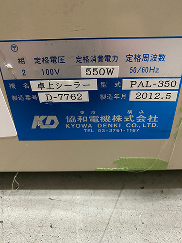 中古協和電機卓上型シュリンク包装機/品番 PAL-350