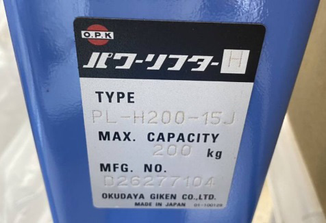 | 中古パワーリフター1100mm両面パレット用ワイドタイプ200kg/品番 PL-H200-15J 問い合わせ番号 Z-01058-8 |