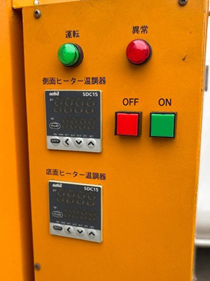 | ドラム缶の側面と底面から加熱する、200Lドラム缶専用のヒーターユニットです。 高粘性液や、固形物の取出しに威力を発揮します。 ![]() ■特長 このユニットは、ドラム缶の内容物をドラム缶の側面から加熱する側面ヒーターと底面から加熱するベースヒーターとこれらを正確に温度制御する温調盤から構成されます。 流動性の乏しいドラム缶内容物を効率よく昇温するためには、より広い面を利用し、内容物に熱によるダメージを与えることなく緩やかに加熱することが重要です。 そのためには、ドラム缶の底からの加熱と側面からの連結のとれた加熱は特に敏感な内容物にも適応します。 ![]() ●ドラム缶内容物を昇温し、原材料の取出しを容易にします。 ●流動性のない内容物や常温で結晶化しているドラム缶内容物を外部より適切な温度で昇温し溶解します。 ●溶解/昇温はドラム缶内容物の耐熱温度以下に設定された安全な温度で緩やかに加熱されます。 ●溶解/昇温に要する時間は内容物の熱伝導率が大きく影響します。攪拌機などを用いれば、昇温時間を大きく短縮出来ます。 ●温度コントロール盤を標準装備。 ●側面ヒーターにキャスターが標準装備で脱着が簡単です。 ●電気加熱は高精度の温度制御が容易です。 ●内容物の耐熱温度以下で制御することにより変質・変色の心配はありません。 ●全体を金属ケースで覆うことにより、外部からの衝撃にも支障のない強固な構造になっています。 ●電気加熱は、有害なNOx、SOxを排出しません。 ●騒音がほとんどありません。 ●メンテナンスにかかる費用が少なくてコスト削減。 ●高温自動停止回路付で安心です。 ●2回路温調はセンサーが独立しており、より高い精度で温度をコントロールできます。 ![]() ■共通仕様