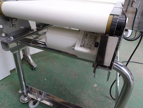 コンベヤ部は開放的でフレームには丸パイプを採用、ゴミが溜まり難く 清掃しやすくて衛生的な構造 本体部表面はゴミが溜らない平面仕上で製品通過間口周辺からネジをなくし脱落による危険を回避 ベルトはワンタッチ着脱が可能で清掃が容易、再取付でもベルトは安定走行