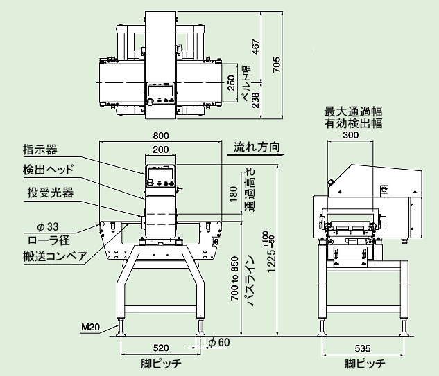 高感度金属検出機 通過幅300mm (非防水)![]() ■寸法図 ![]() ■仕様